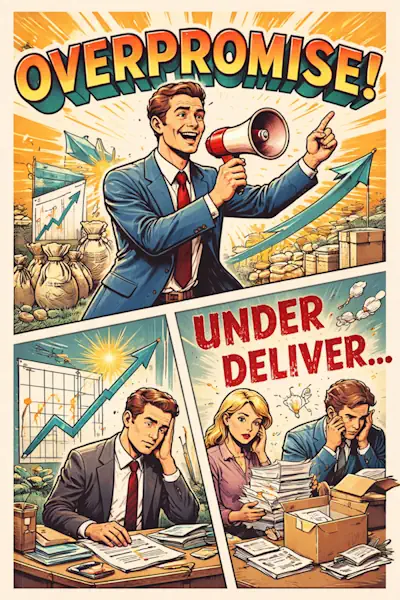 This isn’t unique to games. Enterprise software demos routinely show idealized workflows that don’t match production reality. Roadmaps announce integrations that engineering hasn’t scoped. Sales commits to delivery dates that development hasn’t validated.